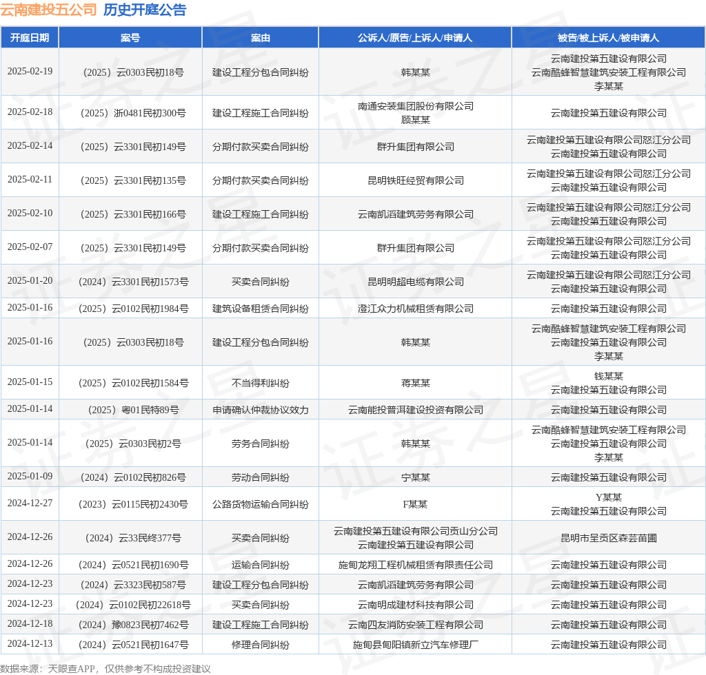 本站消息,根据天眼查APP显示,近日公布了一则云南建投第五建设有限公司作为被告/被上诉人的开庭公告,详细内容如下: